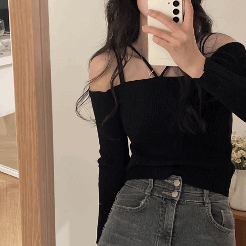 라즈베리케이크의 [🔥인기최고/최저가🔥] 청순 섹시 홀터넥 골지 오프숄더 긴팔 니트 티셔츠 상품입니다. 현재 가격은 11,900원입니다.