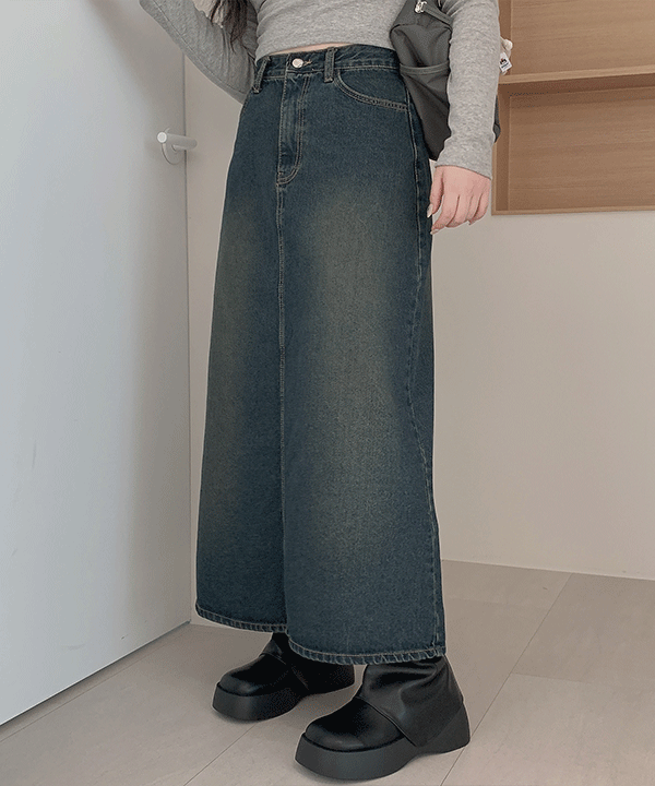 하비언니의 #11005, 빈티지 A라인 워싱 데님 난스판 맥시 롱스커트 : 진청 1color / S~L 상품입니다. 현재 가격은 35,900원입니다.