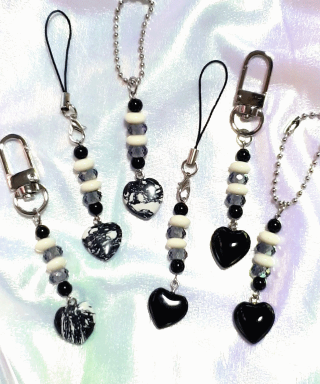 y2k 마블링 블랙 앤 화이트 대리석 느낌 하트 펜던트 비즈 키링 폰줄 에어팟 버즈 스트랩