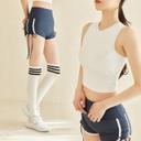 뮤즈마인의 [SET] 인텐션 하이넥 크롭탑 + 셔링 숏팬츠 세트 (화이트+네이비) - 폴웨어 폴댄스 의상 입문용 쇼츠 바지 상의 하의 돌핀팬츠 요가 필라테스 운동복 트레이닝 상품입니다. 현재 10% 할인 중으로, 45,450원에 구매 가능합니다.