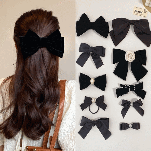 블렌디드의 12종 블랙 벨벳 왕 리본핀 새틴 공단 골프 옆머리 앞머리 자동 삔 상품입니다. 현재 가격은 4,900원입니다.