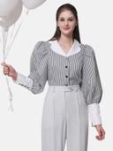 엘바이엘의 스트라이프 소매 퍼프블라우스 상품입니다. 현재 가격은 59,000원입니다.