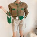 베이시코의 삥줄포켓 배색 니트가디건 상품입니다. 현재 22% 할인 중으로, 36,500원에 구매 가능합니다.
