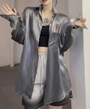 라이키365의 실키 광택 유니크 루즈핏 긴팔 셔츠 블라우스 (그레이.화이트) 상품입니다. 현재 가격은 28,000원입니다.