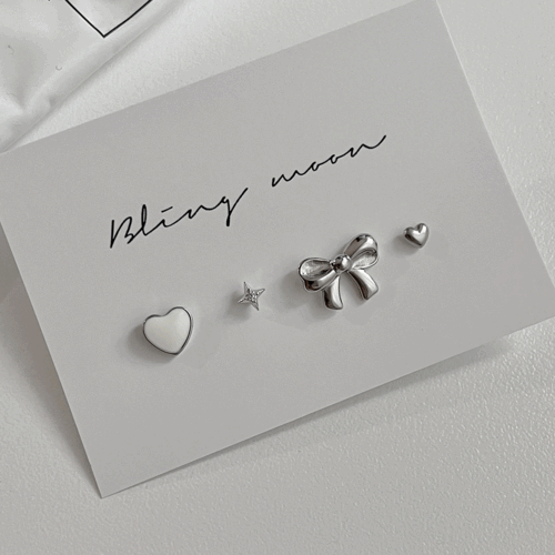 블링문의 [4 set] 바닐라 리본 피어싱 세트 상품입니다. 현재 가격은 17,800원입니다.