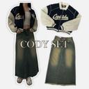 오멜의 [CODY SET]빈티지 바시티 JK + 웨스턴 롱 데님sk 세트 야구점퍼 자켓 배색 야구잠바 y2k 빈티지 샌드워싱 청치마 상품입니다. 현재 가격은 64,900원입니다.