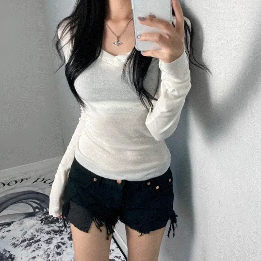미유 MEW의 가을신상❤︎ slit v t (2color) 상품입니다. 현재 가격은 19,500원입니다.