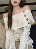 하프닌의 허슬 오프숄더 배색 버튼 타이다이 여리 페미닌 유니크 긴팔 니트 티셔츠 상품입니다. 현재 가격은 37,500원입니다.