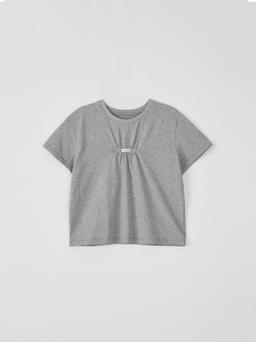 Label Shirring Half Tee - Grey