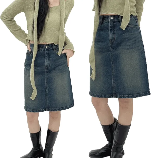 무드무디의 멀핀 5부 미디 데님 워싱 H스커트 상품입니다. 현재 가격은 32,000원입니다.