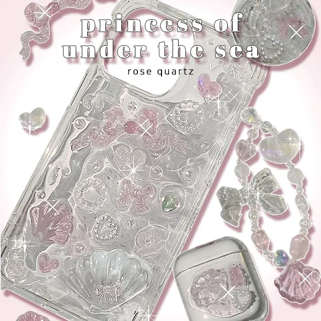 르블루드시엘의 [여리여리 공주템💗/전기종] mermaid princess of under the sea 인어공주 클리어 조개 리본 로즈쿼츠 블루칼세도니 레진 폰케이스 비즈 키링 상품입니다. 현재 가격은 21,000원입니다.