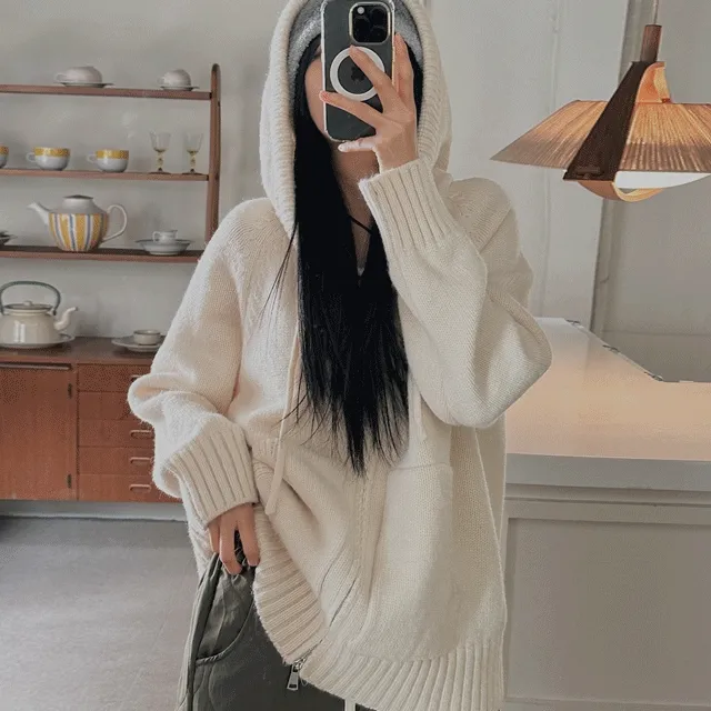 비에브의 [겨울신상/도톰,따뜻] 주니 투웨이 울 오버핏 니트 후드 집업 - 2 color 상품입니다. 현재 가격은 44,000원입니다.