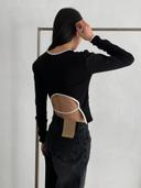 리튼바이의 백 오픈 배색 파이핑 긴팔 티셔츠 상품입니다. 현재 가격은 28,000원입니다.
