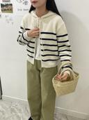 프사이샵의 더블 니트 후드집업 단가라 스트라이프 아이보리 네이비 지퍼 크롭 여자 아우터 상품입니다. 현재 가격은 48,000원입니다.