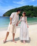 엄라이브의 *기획[커플강추/단품가능] 에스닉 여름 휴가 바캉스 휴양지 커플룩 신혼여행 남녀공용 반팔 셔츠 린넨 밴딩 반바지 여자 끈나시 롱원피스 시밀러룩 여행 바다 물놀이 데이트룩 초특가 상품입니다. 현재 가격은 42,800원입니다.