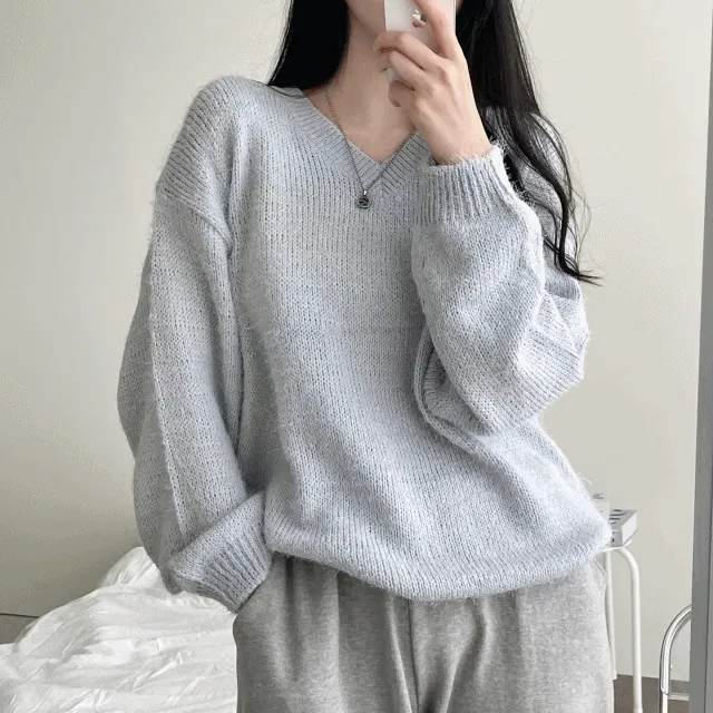 머메이드의 [여리핏]솜사탕 루즈핏 브이넥 솔잎 니트 상품입니다. 현재 가격은 19,500원입니다.