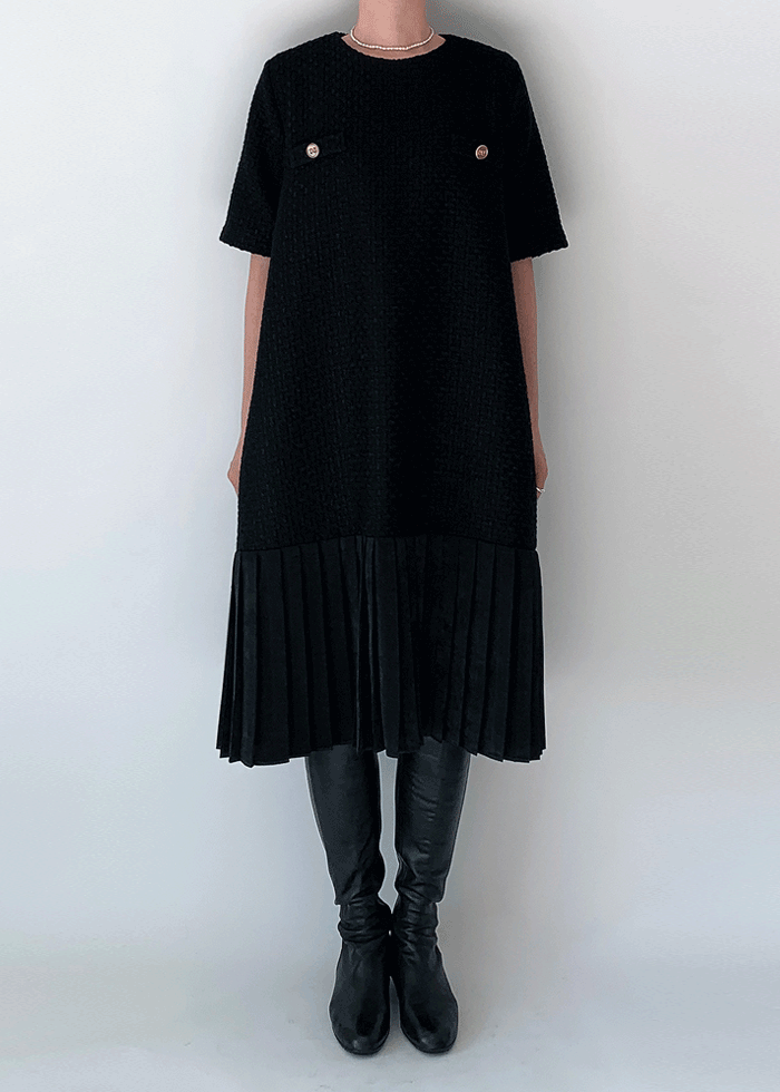 히릴리의 버드 트위드 플리츠 원피스 상품입니다. 현재 가격은 70,000원입니다.