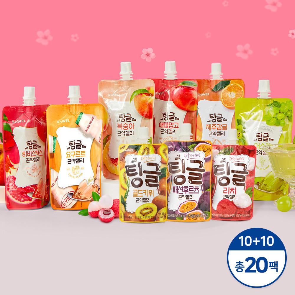 로엘의 로엘 팅글 곤약젤리 6칼로리 6가지맛 & 4칼로리 3가지맛 10팩+10팩 (총 20팩) 상품입니다. 현재 36% 할인 중으로, 12,900원에 구매 가능합니다.