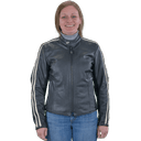 밴슨의 Ladies Drifter Jacket - Perforated Firenze Leather Motorcycle Jacket with Sleeve Stripes 상품입니다. 현재 가격은 $689.00입니다.