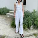 아이즈오의 주디 플라워 코튼 오버롤즈 - 꽃무늬 패턴 오버롤 멜빵바지 코튼멜빵 서스펜더 점프수트 점프슈트 와이드팬츠 긴바지 화이트 흰색 면소재 아메카지 상품입니다. 현재 가격은 47,000원입니다.