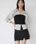 리튼바이의 핀턱 드레이프 볼륨 셔츠 사이드 셔링 레이어드 블라우스 상품입니다. 현재 20% 할인 중으로, 35,600원에 구매 가능합니다.