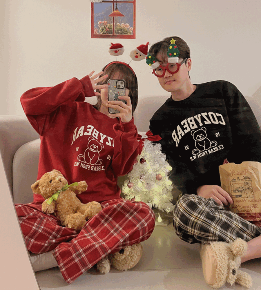 블랙블러썸의 [당일출고] 굿나잇 곰돌이 기모 맨투맨 커플 잠옷 크리스마스 홈웨어 상품입니다. 현재 15% 할인 중으로, 15,900원에 구매 가능합니다.