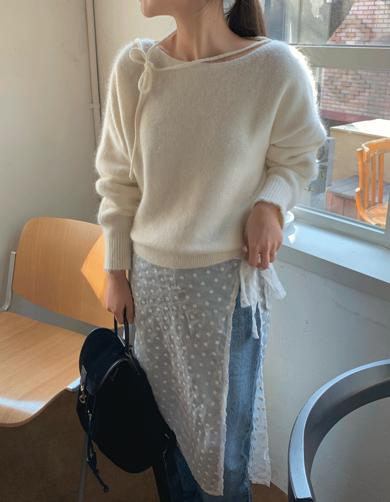 바이마이미의 리본 앙고라 보트넥 니트 (6color) 상품입니다. 현재 가격은 34,000원입니다.