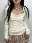 키미스의 시스루 망사 믹스 드레이프 셔링 스퀘어 발레 볼레로 티셔츠(4color) 상품입니다. 현재 가격은 33,500원입니다.