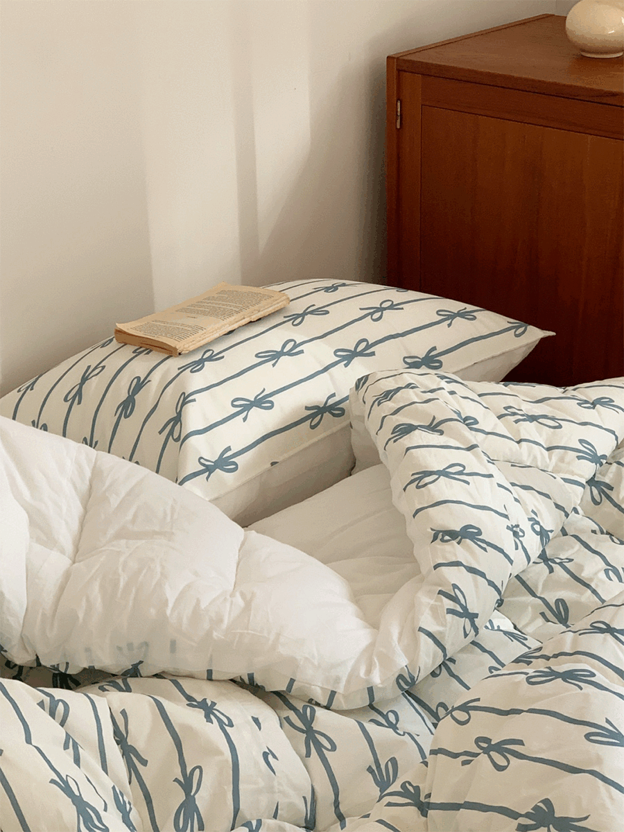쉐어룸의 리본 소프트 차렵침구 - 레이크블루 (S/Q/K) 상품입니다. 현재 가격은 77,000원입니다.
