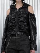 데비어퍼의 [3/11 예약발송] SHIRRING CUT OUT HOOD ZIP-UP_BLACK 상품입니다. 현재 50% 할인 중으로, 103,500원에 구매 가능합니다.