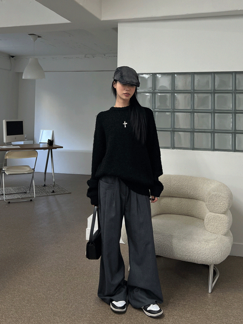 바티아엘르의 [주문폭주, 3/21 19차 입고 순차 발송] 핀 스트라이프 와이드 슬랙스 상품입니다. 현재 가격은 64,700원입니다.