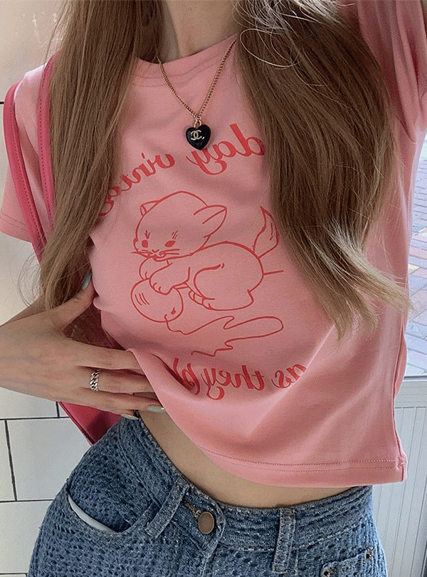 릿스튜디오의 [핑크/화이트]빈티지 캣 프린팅 크롭티 상품입니다. 현재 27% 할인 중으로, 13,950원에 구매 가능합니다.