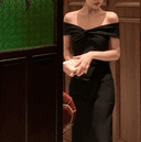 사운즈의 사운즈 오프숄더 슬림핏 미디기장 블랙 원피스 스냅 드레스 웨딩캐주얼 촬영 파티룩 상품입니다. 현재 가격은 34,800원입니다.