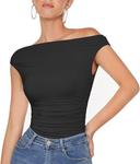 OMKAGI의 OMKAGI Women One Off Shoulder Y2K Tops Double Lined Slim Fit T Shirts Basic Tees 상품입니다. 현재 가격은 $17.24입니다.