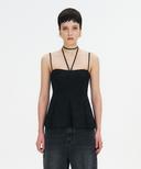 가브리엘리의 DOUBLE-LAYERED SHEER CAMISOLE BLOUSE WITH NECK STRAP TIE - BLACK 상품입니다. 현재 가격은 258,000원입니다.