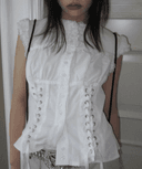 블루하츠의 블루하츠 [발레코어/유니크] 아일렛 캡소매 레이스 스트랩 반팔 블라우스 상품입니다. 현재 가격은 28,700원입니다.