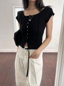 유어즈의 골지 반팔티 캡소매 여성 스퀘어넥 슬림핏티 상품입니다. 현재 3% 할인 중으로, 34,000원에 구매 가능합니다.