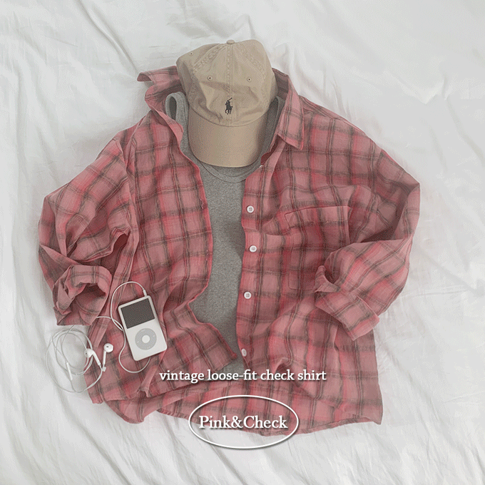 키키러브 KIKILOVE의 [빈티지체크/러블리💗] *여름셔츠* 파본 박시핏 루즈핏 핑크 체크 셔츠 긴팔남방 #너드룩 #긱시크 - 1color 상품입니다. 현재 가격은 22,000원입니다.