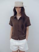유라고의 Sheer check half shirt 상품입니다. 현재 가격은 90,000원입니다.