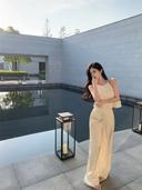 에르드쥬의 에르드쥬 새틴 드레이프 스트레이트 롱 팬츠 & 주름 홀터넥 백리스 크롭 탑 (2color) 상품입니다. 현재 27% 할인 중으로, 33,000원에 구매 가능합니다.