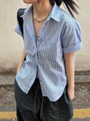 OFYOU 오브유의 스트라이프 데일리 반소매 반팔 셔츠 남방 상품입니다. 현재 가격은 28,500원입니다.