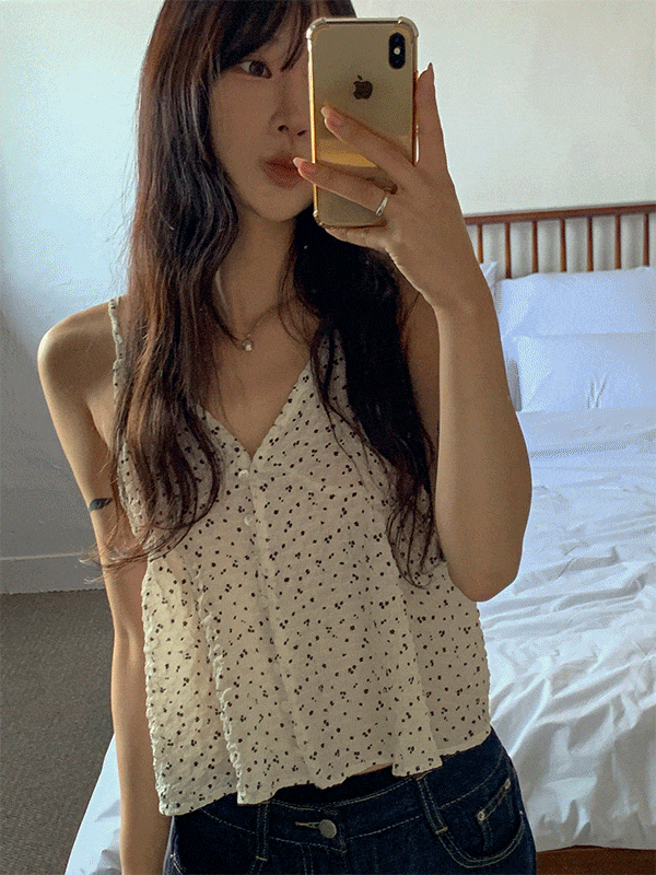 시크블랙의 메임민 브이넥 잔꽃 패턴 엠보 나시 상품입니다. 현재 가격은 21,900원입니다.