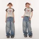 BETWEENAND 의 BETWEENAND X sunonebird 일러스트 래글런 배색반팔티셔츠 세미 크롭티 상품입니다. 현재 19% 할인 중으로, 43,000원에 구매 가능합니다.