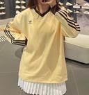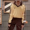 아디다스의 아디다스 스트라이프 새틴 롱 슬리브 카라 티셔츠 옐로우 IT9835 상품입니다. 현재 가격은 136,000원입니다.