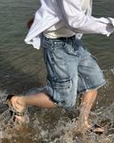 프롬투미의 Paradise Cargo Bermuda PT,남자 여름 카고 버뮤다 워싱 데님 팬츠 반바지 상품입니다. 현재 가격은 54,500원입니다.