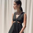 플라주의 린넨 컷아웃 드레스_블랙 상품입니다. 현재 30% 할인 중으로, 90,300원에 구매 가능합니다.