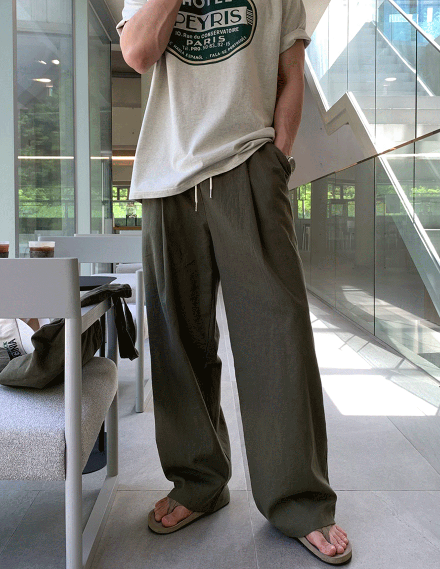 룩플의 룩 레이플 린넨 원턱 밴딩 와이드 팬츠 상품입니다. 현재 23% 할인 중으로, 34,900원에 구매 가능합니다.