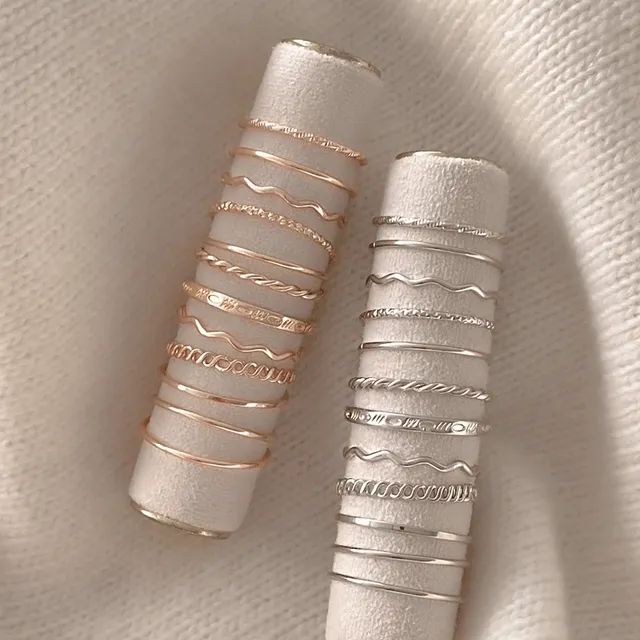 온드원의 [12pcs]크리미 데일리 심플 실반지 레이어드 링 반지 세트 상품입니다. 현재 가격은 12,900원입니다.
