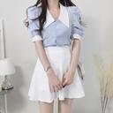 조이어블의 조이어블 [예쁜색감] 카라 퍼프 반 크롭 체크 블라우스 상품입니다. 현재 가격은 17,900원입니다.