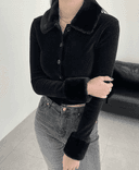 데이현의 퍼 벨벳 크롭 가디건 (3 color) 상품입니다. 현재 가격은 48,000원입니다.